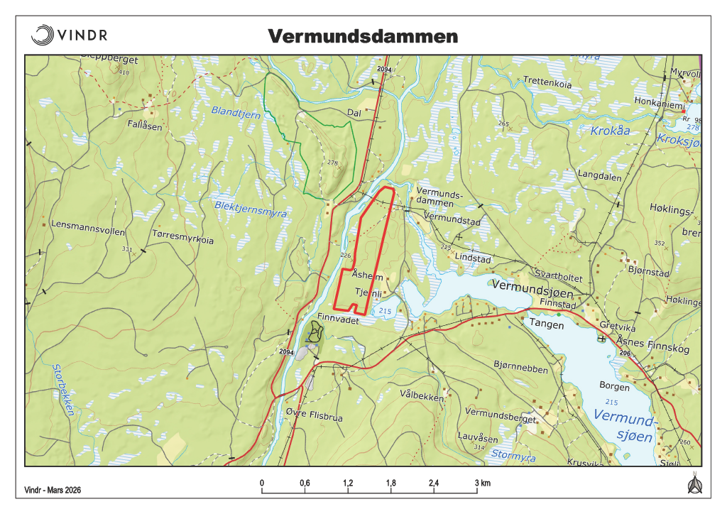2 km vest for Vermundsjøen i Åsnes kommune utvikler vi i Vindr Vermundsdammen Solar, et solkraftverk på 40 MWp. Foreløpig beregninger viser en forventet årsproduksjon på 51 GWh. Tar man utgangspunkt i SSBs statistikk for gjennomsnittsforbruk i norske husstander vil dette dekke forbruket til rundt 3000 boliger.